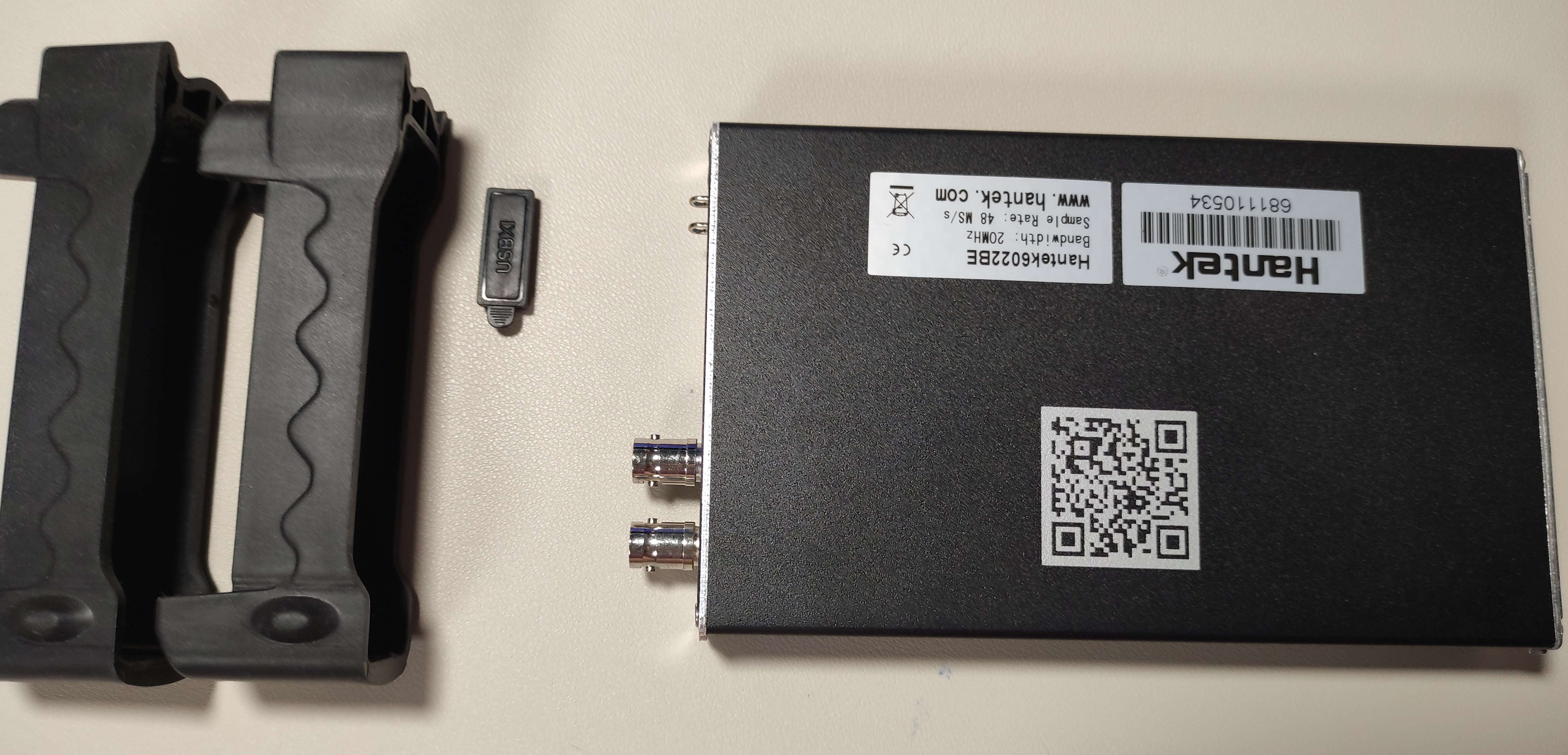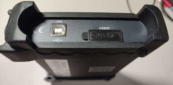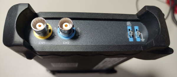 After it arrived I was pleasantly surprised by the build quality and started to play with it. There are two channels in total, which are more than enough for beginners. The communication is using USB2 which is not that great. USB3 would be a more logical choice if you ask me. The price difference can't be that large for different USB protocols. There also exits a rectangular test Signal which can be used to calibrate the probes which are two in total and have an acceptable quality in this price range. Besides the USB 2 connectors also some strange ports exits (USBXI???). That's all for connectivity.